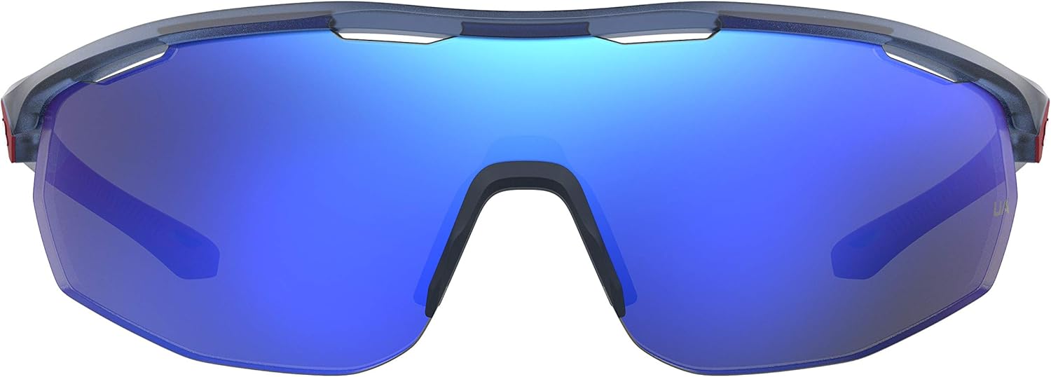 Under Armour Sunglasses. Series number: UA 0003/G/S. Color code: 0PJP/W1. Shape: Shield. Lens Width: 99 mm. Lens Bridge: 1 mm. Arm Length: 120 mm. 100% UV protection. Frame Material: Plastic. Frame Color: Blue. Lenses Type: Blue. Rim Style: Semi-Rimless. UPC/EAN code: 716736383859. Under Armour Blue Shield Men's Sunglasses UA 0003/G/S 0PJP/W1 99.