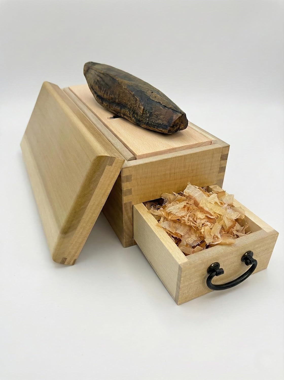 Experience the deep umami of authentic Japanese dashi with this handcrafted Katsuobushi shaver. Made in Tsubame-Sanjo, Japan’s renowned blade-crafting region, it turns hard bonito blocks into soft, aromatic flakes that elevate soups, noodles, and everyday Japanese dishes. The spruce wood body and precision steel blade deliver both durability and a beautifully smooth shaving experience.